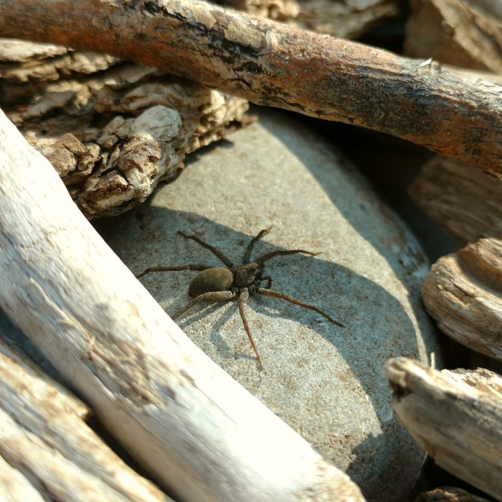 Previous ImageNext Image Sunning Pardosa A suede-brown Pardosa wolf spider sunning herself on a rock.